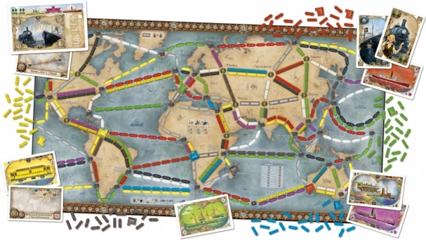 Le jeu conserve l’accessibilité et la fluidité de la série tout en ajoutant de nouveaux choix : cartes train et bateau, construction de ports et billets à forts enjeux demandant de relier plus de deux villes. Chaque partie offre ainsi de nouvelles tactiques et une grande rejouabilité.