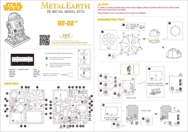 Ce modèle 3D en métal R2‑D2 de la série Metal Earth est composé de feuilles d’acier que vous façonnez pour créer une miniature réaliste de l’emblématique droïde. La construction sans colle repose sur de verrous à languettes pliables, offrant au final un modèle robuste et élégant au rendu authentique.