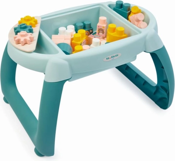 Table pour enfants avec briques intégrées, idéale pour développer la motricité fine ainsi que la reconnaissance des couleurs et des formes. Contient 22 pièces d’accessoires.