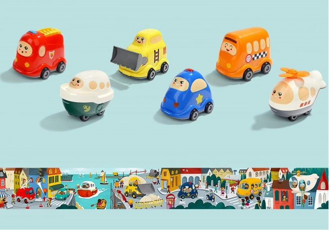 La mini-série permet de relier les bords de plusieurs sets (camion de pompiers, voiture de police, bus scolaire, bulldozer, hélicoptère, bateau) pour créer un puzzle panoramique. Elle développe la patience, la coordination œil-main et favorise le jeu autonome.