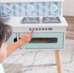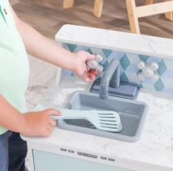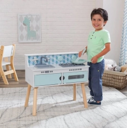 La cuisine en bois pour enfants KIDKRAFT Play & Put Away est un ensemble de jeu bien pensé qui apporte la joie de cuisiner en toute sécurité. Des éléments réalistes, comme les plaques de cuisson avec deux boutons de commande qui cliquent agréablement à la rotation, et les portes ouvrantes, stimulent le jeu créatif et le développement des compétences sociales.
