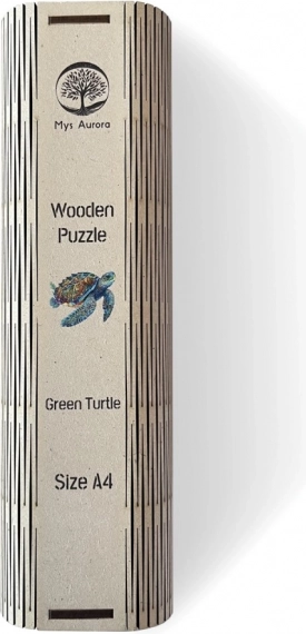 Le puzzle en bois Green Turtle A4 offre une expérience d’assemblage inoubliable grâce aux formes inhabituelles, presque artistiques, de ses pièces. Chaque élément est unique et certaines pièces sont découpées en silhouettes de différents animaux et plantes, rendant l’assemblage plus amusant et visuellement attrayant. Une fois terminé, vous obtenez une image compacte au format A4, parfaite comme décoration intérieure.