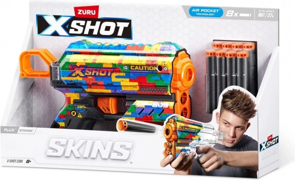 Le blaster X-Shot Skins Flux, léger et performant, en skin Striper, offre une action rapide et un tir précis avec une portée jusqu’à 27 m. Les fléchettes en mousse dotées de la technologie Air Pocket assurent une meilleure stabilité et précision de vol, le logement avant accélère le rechargement rapide et l’emballage contient 8 fléchettes. Un excellent choix pour les débutants comme pour les joueurs avancés à partir de 8 ans.