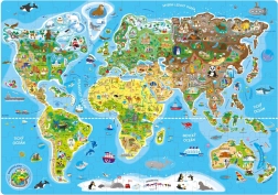 Les motifs illustrés d’animaux, de monuments et de curiosités naturelles développent les connaissances géographiques de manière ludique. Grâce à ses 160 pièces et à son grand format, l’assemblage est clair et motivant.