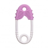 Pratique anneau de dentition en silicone en forme d’épingle, il apporte un soulagement aux bébés pendant la poussée dentaire. Il est léger, facile à saisir et grâce aux différentes textures de surface, il masse délicatement les gencives. Convient dès 0 mois et idéal pour les petites mains des enfants.