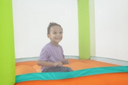 Offrez aux enfants un divertissement sans fin avec le château gonflable Bestway. Grâce à sa base gonflable robuste, ses parois latérales en filet et sa construction solide, les sauts sont sûrs même pour les plus petits dès 3 ans. Les parois transparentes permettent de garder les enfants à l’œil, tandis que la pratique ouverture d’entrée facilite l’accès et la sortie. Idéal pour développer la motricité, la coordination et l’équilibre.