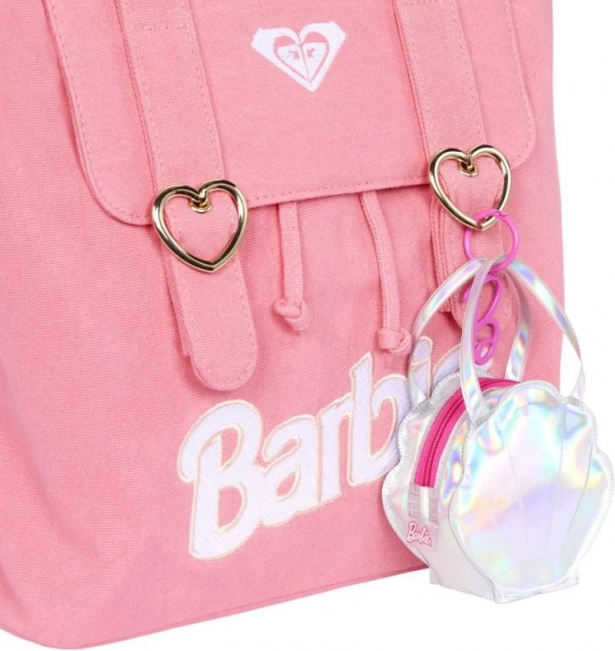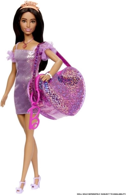 Un sac attrayant se distingue par son tissu brillant et des détails façon autocollants, offrant à Barbie un look exceptionnel en déplacement.