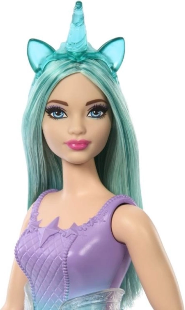 - Poupée Barbie, serre‑tête amovible avec corne, queue amovible, tenue, bottes