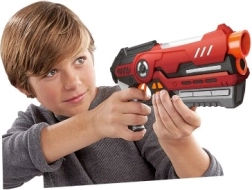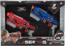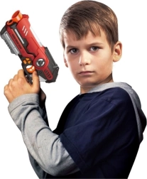 Ce kit de deux pistolets laser offre un excellent jeu d'action pour deux joueurs. Grâce à la détection des touches jusqu'à 40 mètres, vous profiterez de duels palpitants au jardin comme dans le salon. Trois indicateurs lumineux sur l'arme affichent clairement les vies restantes et les effets lumineux et sonores ajoutent encore plus d'ambiance au jeu.
