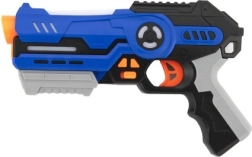Sa structure plastique légère et sa longueur de 25 cm assurent une prise en main confortable même pour les petites mains. Il fonctionne avec des piles AA standard (3× par pistolet, non fournies). Un cadeau idéal pour les enfants dès 8 ans qui aiment bouger, la stratégie et le travail d'équipe.
