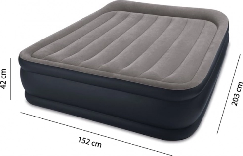 La pompe électrique intégrée permet une utilisation pratique sans accessoires supplémentaires – en quelques minutes, vous préparez un véritable lit double, puis après dégonflage, vous le rangez rapidement dans le sac de transport. La hauteur surélevée de 42 cm facilite l’allongement et le lever et apporte un confort proche d’un lit classique.