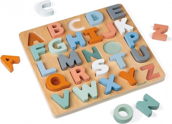 Ce puzzle encastrable en bois de qualité JANOD allie jeu et apprentissage. Les enfants placent les lettres colorées dans leurs empreintes et s’approprient naturellement les formes de l’alphabet. Le revers du plateau sert de tableau pour écrire à la craie, afin de s’exercer aux tracés, aux premiers mots et au dessin créatif.