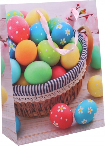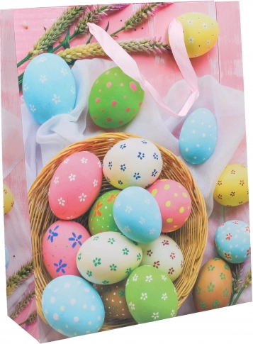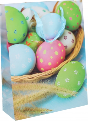 Élégant sac cadeau pour Pâques au format M 26×32×10 cm, idéal pour emballer vos cadeaux de Pâques de manière jolie et sûre.