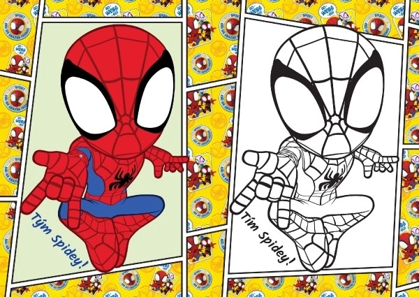 Des coloriages amusants avec le héros SPIDEY au format pratique A5 raviront tous les petits artistes. Le cahier propose 9 images en noir et blanc à colorier et 9 modèles en couleur pour une inspiration facile. Idéal pour le développement de la créativité et de la motricité fine des enfants dès 3 ans.