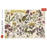 Puzzle Livre des herbes contient 500 pièces et offre un superbe graphisme rétro avec des plantes, rappelant un ancien herbier.