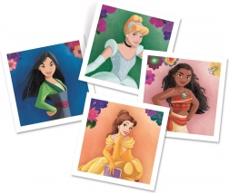 Le jeu contient de magnifiques illustrations des princesses Disney préférées, qui séduiront chaque petite amoureuse de contes de fées.