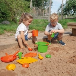 Un ensemble amusant et écologique pour les petits chefs, au bac à sable comme à la plage. Set de sable 14 pièces en combinaison bois et plastique au parfum de bois, comprenant une casserole de 2 l, un tamis, des ustensiles et des moules pour « cuisiner ». Livré dans un filet en coton biologique, il est résistant et sûr dès 12 mois et développe la motricité fine, la coordination œil–main et la créativité.