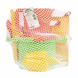 Fabriqué en mélange résistant de plastique et de bois, agréable au toucher et subtilement parfumé au bois. Le set est rangé dans un filet en coton biologique, soulignant son respect de la nature. Tous les composants sont conçus pour les petites mains, faciles à nettoyer et adaptés à un usage quotidien.