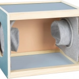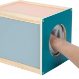 Notre jouet offre un divertissement polyvalent et durable grâce à deux ouvertures latérales permettant aux enfants de toucher différents objets à l’intérieur. Parfait pour les jeux de mémoire, de recherche ou de reconnaissance. Cette boîte est fabriquée en bois et présente un design moderne et coloré.