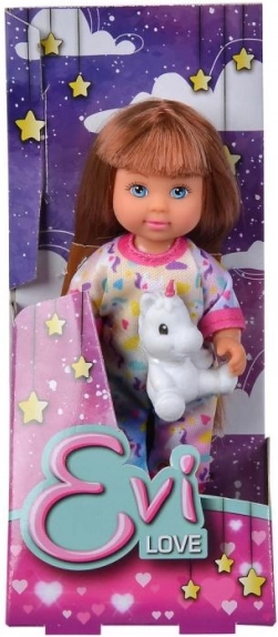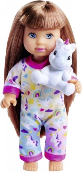 Découvrez la magie du coucher avec la poupée Evi en pyjama coloré et sa mignonne licorne. Grâce à son format compact de 12 cm, elle est idéale en voyage comme dans le petit lit des enfants. Trois variantes différentes favorisent la collection et un jeu varié.