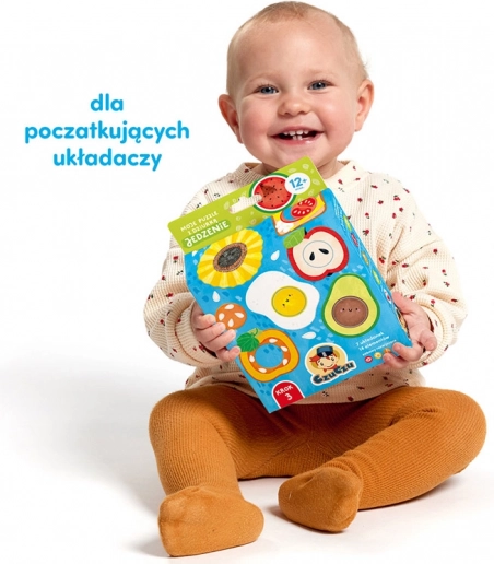 Un premier puzzle pour les tout-petits, qui sent bon l’amusement ! Le set contient 7 grands puzzles de deux pièces sur le thème de la nourriture avec des pastilles interchangeables. Grâce au système d’emboîtement simple, l’assemblage est intuitif et motivant. Développe la motricité fine, la concentration soutenue, la perception des formes et des couleurs et la joie naturelle de découvrir.