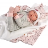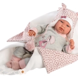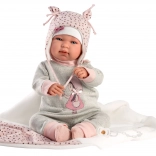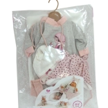 Élégante tenue 4 pièces pour poupées NEW BORN de 43–44 cm, avec un harmonieux duo rose‑gris, une couverture douce avec pompon à nouer et un savoir‑faire artisanal espagnol de qualité. Emballage pratique sur cintre en plastique dans une housse transparente et conception sûre dès 3 ans.