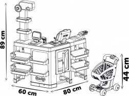 Le supermarché SMOBY amusant et interactif est idéal pour les enfants qui souhaitent s'immerger dans le monde des achats et des ventes. Ce set de jeu comprend tout ce que vous attendez d'un véritable magasin, y compris une caisse avec un scanner lumineux et sonore, une balance mécanique et un lecteur de cartes de crédit. Un excellent complément est le panier, qui facilite les jeux d'achat pour enfants.