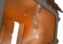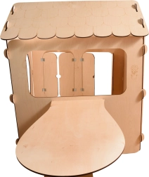 La maison comprend également une table pratique où les enfants peuvent jouer ou créer. Elle est fabriquée en bois à l’aspect naturel, ce qui lui confère une esthétique chaleureuse et s’intègre à tout espace extérieur ou intérieur.