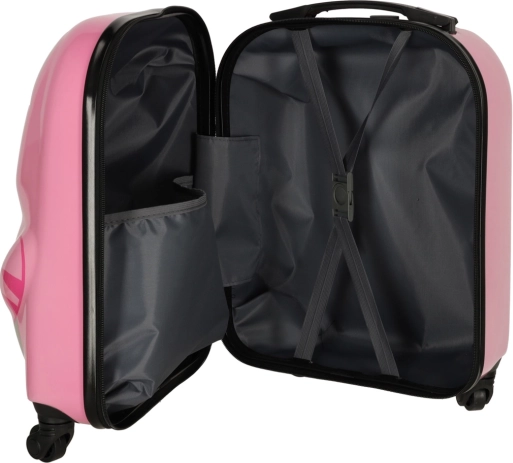 Quatre roulettes stables et une poignée extensible permettent aux enfants de tirer la valise confortablement, même sur de plus longs trajets.