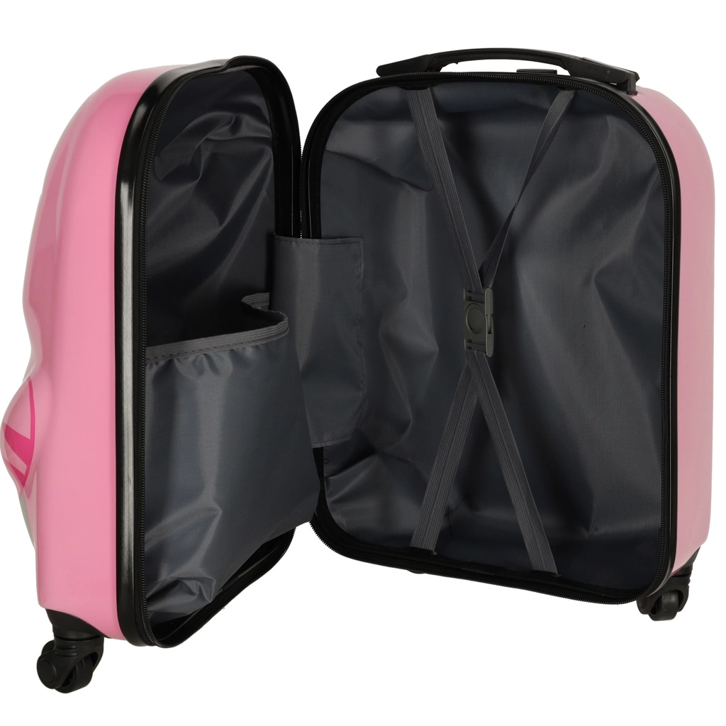 L’intérieur est divisé en deux parties : un côté avec une séparation zippée et l’autre avec des sangles croisées pour maintenir les affaires en place en toute sécurité. Grâce à son organisation bien pensée, tout le nécessaire trouve sa place – des vêtements aux jouets préférés.