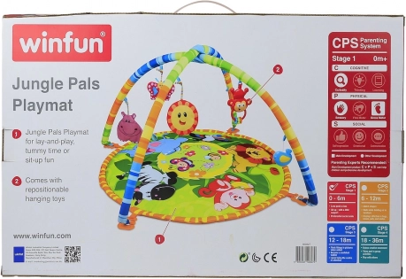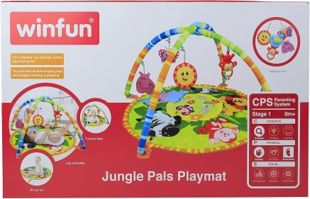 Ce tapis d’éveil doux et sûr, inspiré de la jungle, accompagnera votre bébé tout au long de sa première année et au-delà. Les couleurs contrastées et les jouets suspendus sur l’arche attirent son attention : il peut d’abord les observer, puis les saisir et les secouer. Il renforce ainsi naturellement les bras, le dos et le cou, améliore la coordination œil–main et développe ses capacités cognitives.