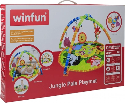 Ce tapis d’éveil joyeux au motif jungle, au toucher ultra doux et doté d’une arche amovible, offre à bébé un espace sûr pour découvrir le monde. Il favorise le développement de la motricité, la stimulation sensorielle et le tummy time grâce aux jouets suspendus colorés à différentes hauteurs. Le tapis est facile à plier, lavable en machine et accompagne l’enfant depuis la position allongée sur le dos, en passant par le temps sur le ventre, jusqu’à la position assise et les premiers déplacements.
