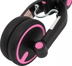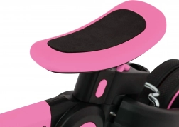 Poignées en caoutchouc avec surface antidérapante et selle rembourrée en mousse avec réglage en deux positions (28–30 cm) pour plus de confort. Roues en caoutchouc (avant 22×3,5 cm, arrière 17×3,5 cm) avec bande de roulement offrant une excellente tenue de cap, et roue libre avec possibilité de retirer les pédales pour permettre à l’enfant de se propulser en toute sécurité.