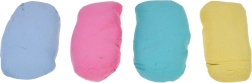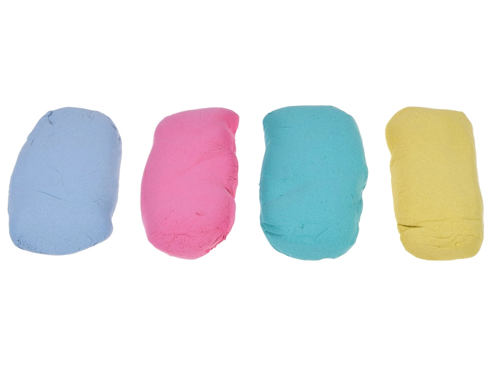 Le set comprend 4 sachets de 70 g de sable en jaune, rose, vert et bleu. Le sable ne s’effrite pas et ne sèche pas, il sent le doux chewing-gum.