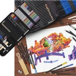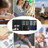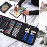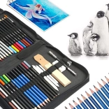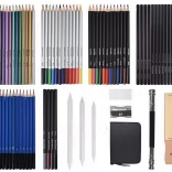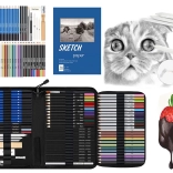 L'ensemble comprend des crayons de différentes duretés, des pastels, des fusains, des estompes, un taille-crayon et un carnet de croquis, tout ce dont vous avez besoin pour une création artistique complète.