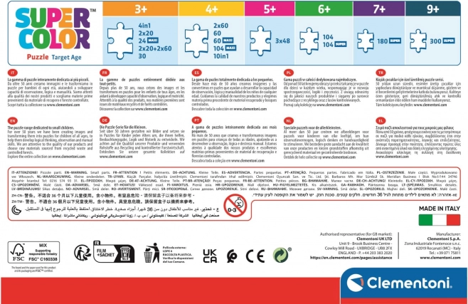 Puzzle progressifs avec différents niveaux de difficulté – 4 puzzles de 12 à 24 pièces ; à mesure que le nombre de pièces augmente, leur taille diminue. Collection Puzzle SuperColor – une édition spécialement conçue pour les enfants, qui les aide à développer leur motricité fine et leur capacité d’observation. La qualité des matériaux et une technique d’impression exclusive garantissent des couleurs durablement belles, vives et éclatantes.