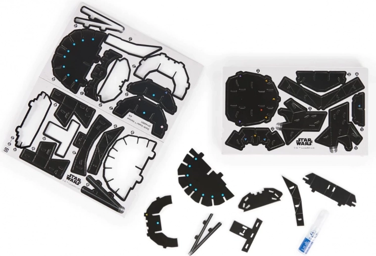 Vivez une aventure épique avec le modèle 4D au rendu cinématographique du casque de Dark Vador. Grâce à des détails inspirés de l’accessoire original et à son socle solide, il attire le regard sur toute étagère. Le montage est intuitif et amusant – détachez simplement les pièces des plaques, collez-les et le tour est joué en un rien de temps.