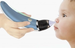 Cet aspirateur adapte sa puissance d'aspiration sur cinq niveaux, permettant un enlèvement efficace du catarrh épais sans irriter la muqueuse nasale. Il comprend deux embouts en silicone que vous pouvez changer selon l'âge de l'enfant.