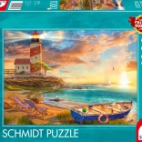 Puzzle Coucher de soleil sur la baie avec phare 1000 pièces