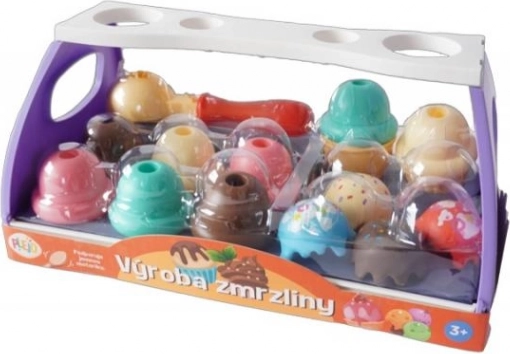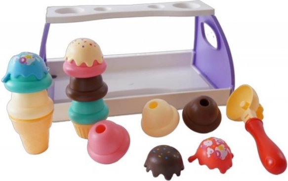 PLEJO fabrication de glaces : plateau de service avec support, cornet, glace et cuillère. Un excellent set pour s’amuser à jouer au glacier.