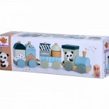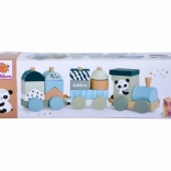 Le train en bois EICHHORN Panda est un jouet idéal pour les premières constructions et la découverte des formes et des couleurs. Les enfants peuvent enfiler librement les blocs sur les chevilles et composer leurs propres wagonnets, ce qui favorise la créativité et la coordination œil‑main. Le mignon motif panda et les couleurs pastel agréables en font un accessoire attrayant pour la chambre d’enfant.