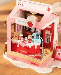 Découvrez la magie du mini-monde avec la mini-maison Bar à lait Strawberry. Cette maquette créative de Robotime séduit par ses détails réalistes, son design ludique et son agréable éclairage LED. Le montage est divertissant et le résultat sera un charmant objet déco pour une étagère ou un bureau.