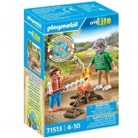 - Contient deux figurines PLAYMOBIL, un feu de camp, deux bâtons en bois et six marshmallows.