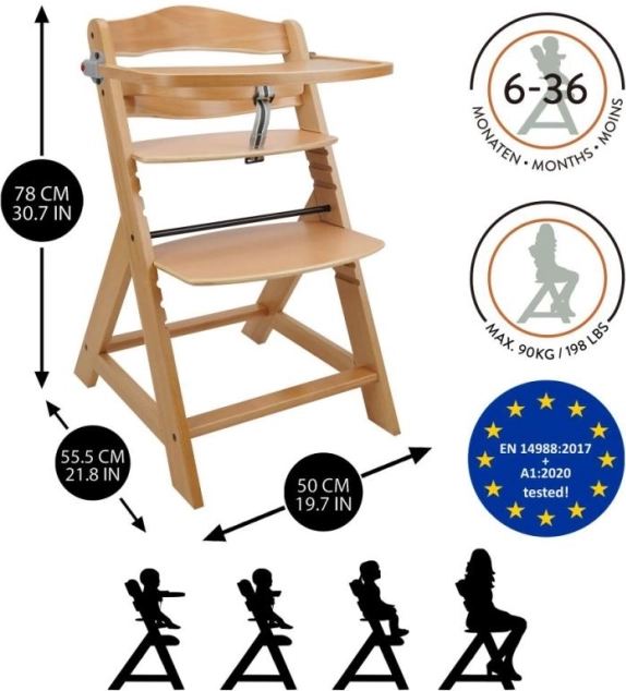 Chaise haute évolutive avec plateau - naturel