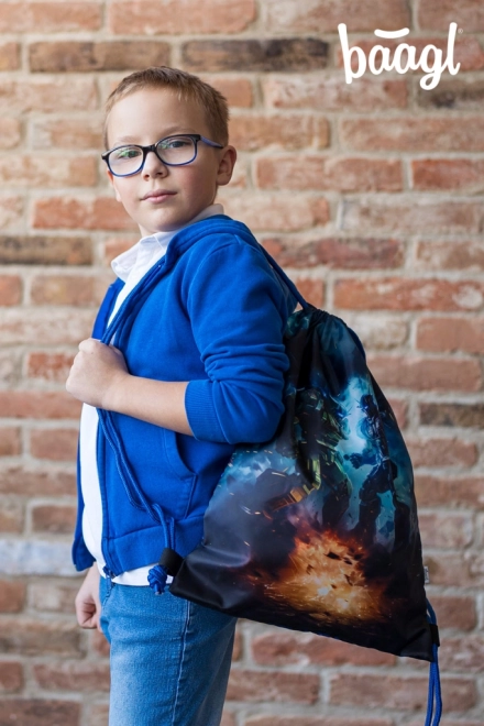 Un sac stylé au motif robot dynamique qui séduira enfants et ados. Grâce à son matériau résistant et facile à laver, il supporte un usage quotidien à l’école, aux clubs et au sport. Les cordons pratiques permettent un port confortable sur le dos, comme un petit sac à dos.