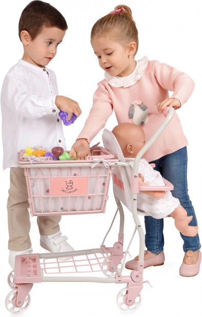 Adorable chariot de courses pour enfants 2‑en‑1 de la collection KOALA, combinant un grand panier roulant avec siège pour poupée et un panier à main amovible. Il comprend 12 fruits en plastique, des roulettes avant pivotantes, des freins à l’arrière et un espace de rangement dans la partie inférieure. Maniement léger, finition de qualité et design délicat qui raviront chaque petite marchande.