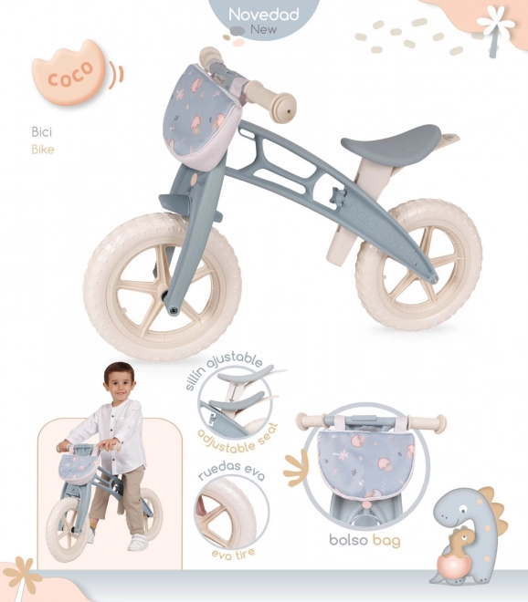 La draisienne COCO est le premier vélo idéal pour les enfants dès 3 ans. Grâce à son faible poids de 2 kg, elle est facile à piloter, renforce la confiance à vélo et prépare l’enfant à une transition fluide vers un vélo à pédales. Son design au motif dinosaure mignon allie style espagnol et sens du détail.