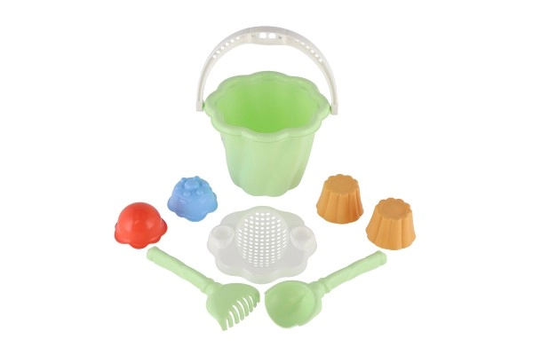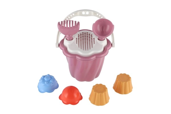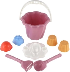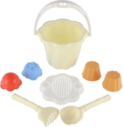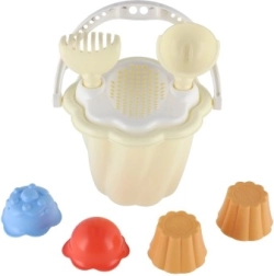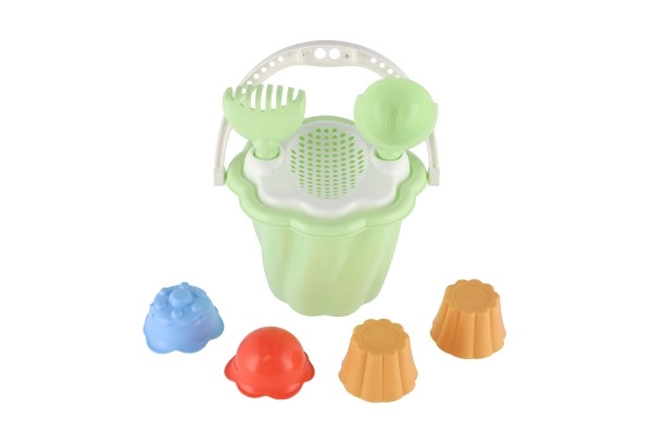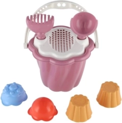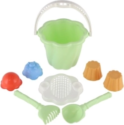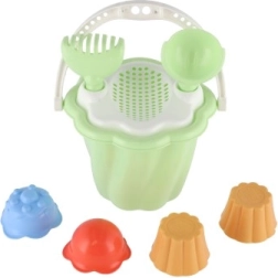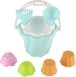 Ce set comprend un seau, une pelle, un râteau et quatre moules, idéal pour des heures de jeu sans fin au bac à sable ou à la plage.