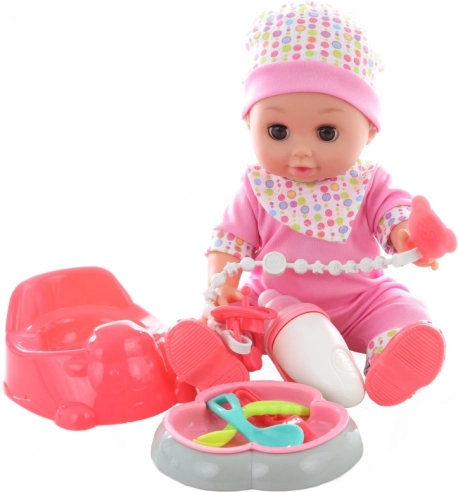 Le coffret contient tout le nécessaire pour des soins complets : pot, chaussons, biberon, assiette et autres accessoires pratiques. La poupée est un excellent cadeau pour les enfants dès 3 ans et aide à développer la motricité fine, l’empathie et le sens des responsabilités.