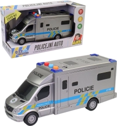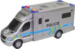 Cette voiture de police offre aux enfants une action palpitante avec des effets lumineux et sonores réalistes en langue tchèque. Le véhicule avance grâce à un mécanisme à friction, dispose de portes ouvrantes et d’un gyrophare fonctionnel avec lumières bleues d’avertissement, complétés par des annonces de l’équipage et du centre de dispatching. Idéal pour les petits policiers dès 3 ans.